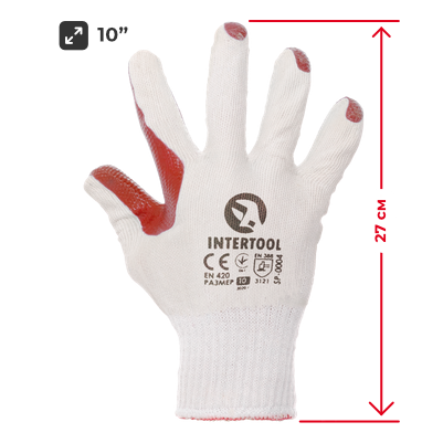 Перчатки каменщика (стекольщика) отлично защищают руки, благодаря плотному покрытию из латекса, нанесенному на основу методом вулканизации, и характеризуются повышенной износостойкостью и прочностью. Основа из трикотажа с поликоттоном обеспечивает гигиеничность и комфорт во время работ. Манжет-резинка обеспечивает надежную фиксацию, и перчатка удобно сидит на руке, защищая от попадания вовнутрь пыли и мелких частиц.