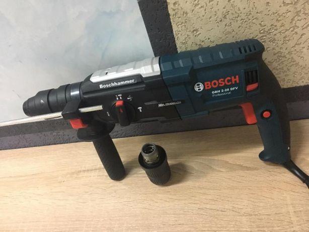 Bosch GBH 2-28 DFV – універсальний 3-режимний інструмент професійного класу, що дозволяє працювати на 900 об/хв за 4000 уд/хв. Сприяє цьому, перш за все, електричний двигун із споживаною потужністю 850 Вт, надійний редуктор та ефективний ударний механізм. Конструкція Bosch GBH 2-28 DFV оптимізована для тривалої роботи без втоми в руках та суглобах завдяки вдалому розподілу ваги та наявності ергономічних рукояток, доповнена системою активного гасіння вібрації та міцним кабелем. Для розблокування свердла що заклинило в пристрої передбачений реверс, для загальної безпеки під час експлуатації – запобіжна муфта.